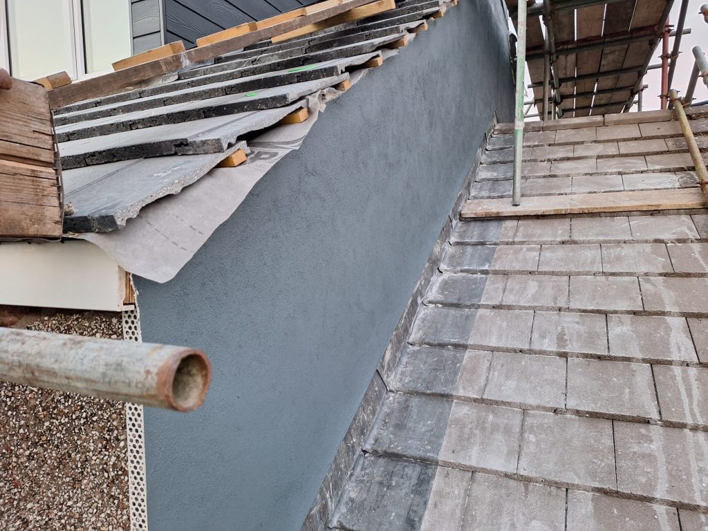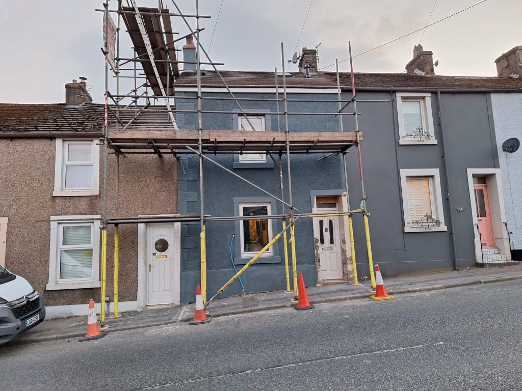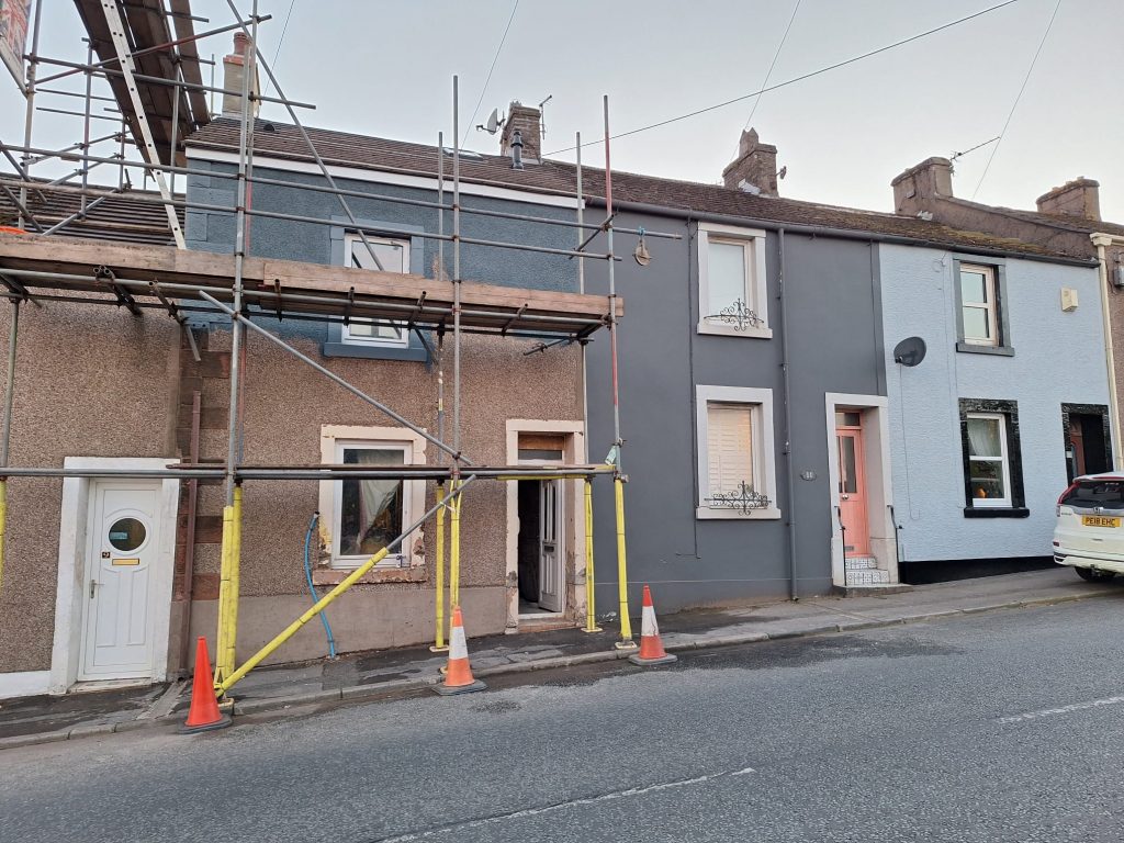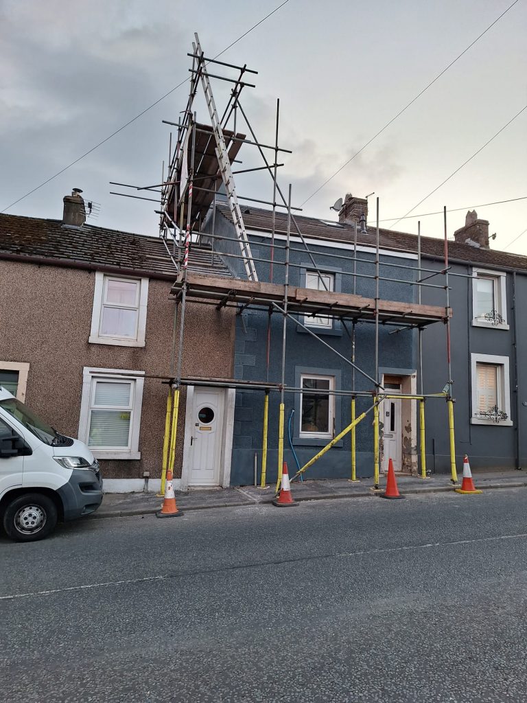To seal the existing rendering and the new rendering on the gable, we have finished the property in a lovely slate blue masonry coating, which I think you will all agree, looks absolutely stunning alongside the existing sandstone edge blocks on the front of the property!