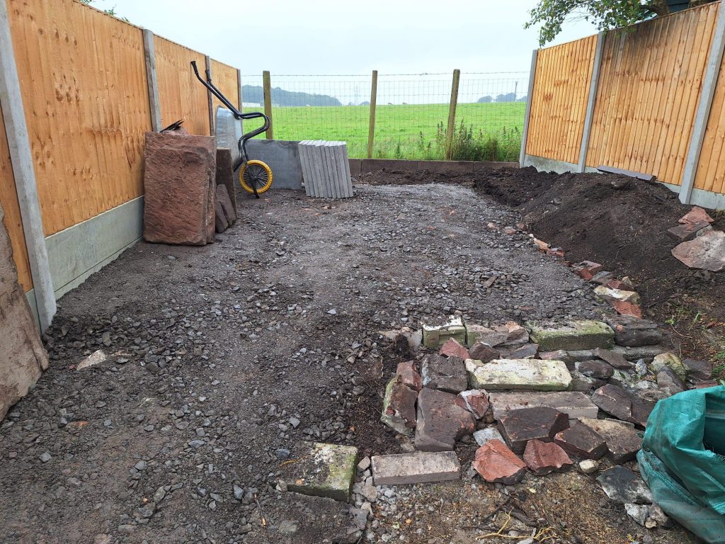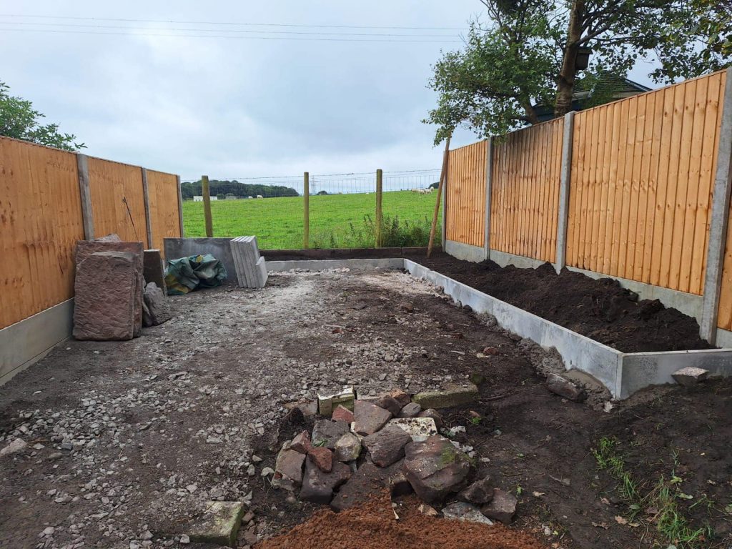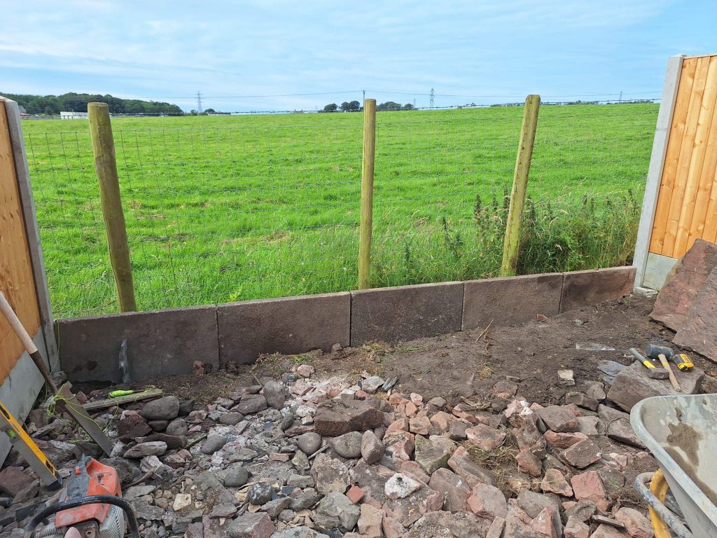 The rear garden is definitely starting to take shape now! The levels are all mapped out, merging seamlessly with the Gabion Baskets installed a few weeks ago. Flowerbeds are now in place around the rear of the patio area, framing the view of the rear farmlands perfectly.